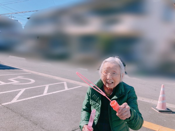 この日は風が少しあり、シャボン玉が風に乗って遠くの方まで運ばれて行きました( *´艸`)