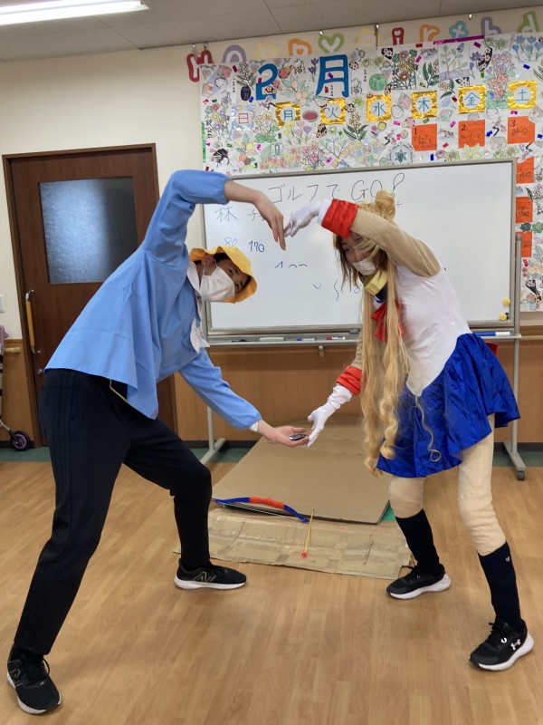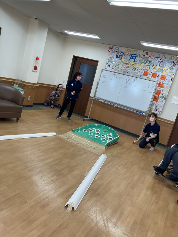 今日のレクリエーションは、ゴルフでGOと、特別にバレンタインデーのレクを行いました。