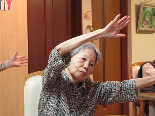 椅子を動かし自主的に体操を始める方もいらっしゃいます。
