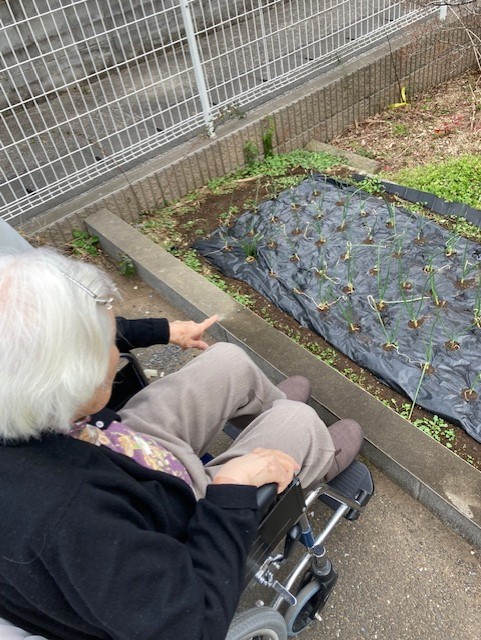 今日はあんまりお日様は出ていないけど暖かいし散歩がてら成長したタマネギと水をやりに行きましょ( *´艸`)