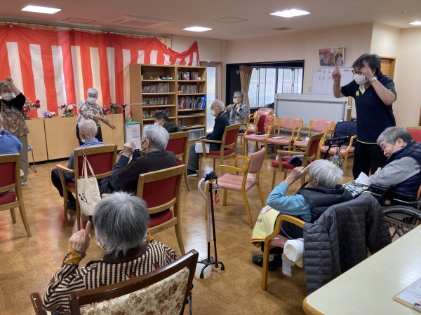 「凄い声量ですね!!」とのご利用者様の歓声に「マイク、場所、お客さんと三拍子良い物が揃ってるからですよ」と華麗に受け止めていらっしゃいました(笑)