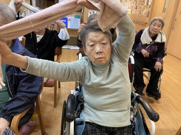 タオルを使って体操開始です!