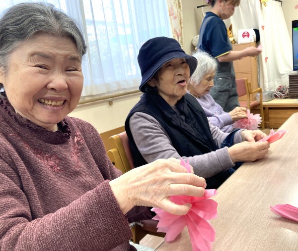 と、いう事で1階フロアーではご利用者様と春を制作♪