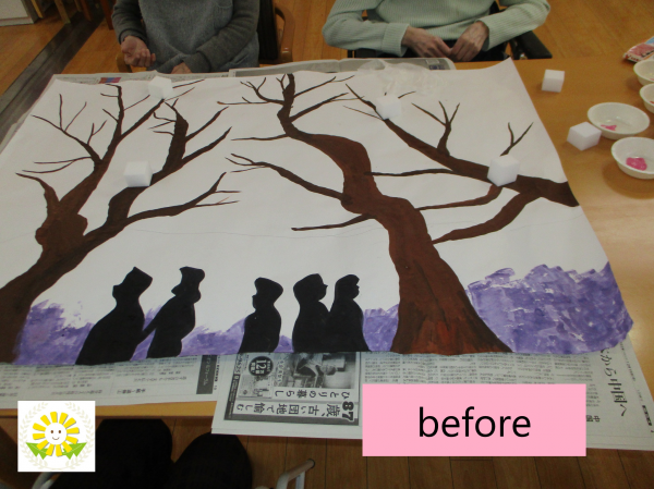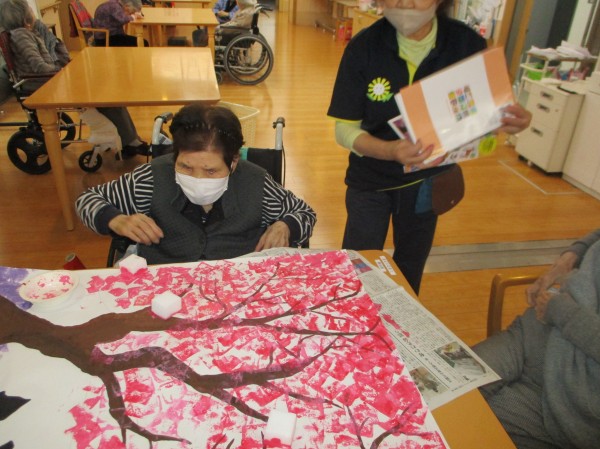 スタッフが「桜の花をみんなで咲かせましょう(*^-^*)」