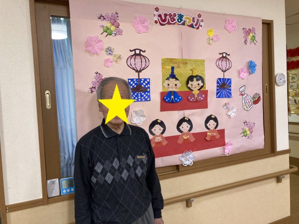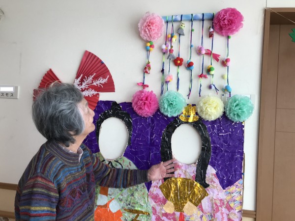 1F、ひな祭り壁飾りの完成です(*'▽')