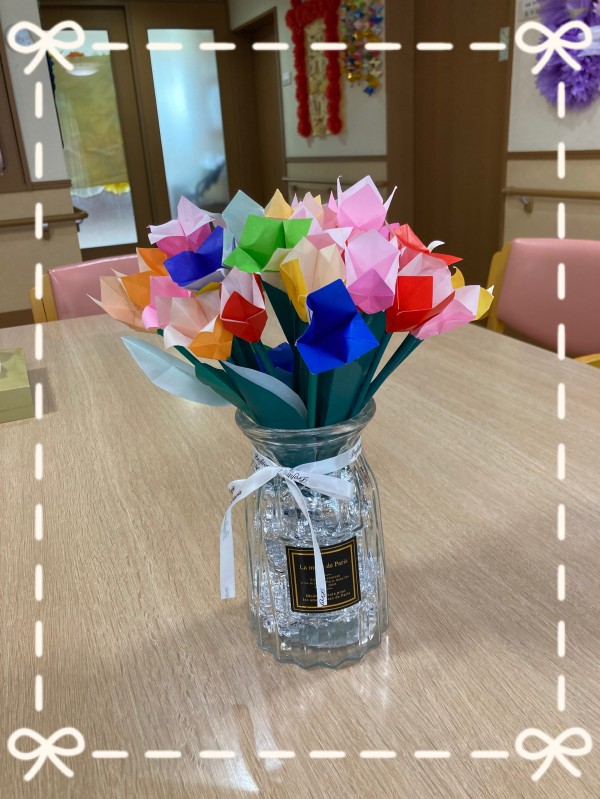 可愛いお花が沢山完成したので、フロアのテーブルに飾りました(^_-)-☆
