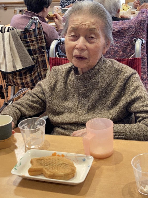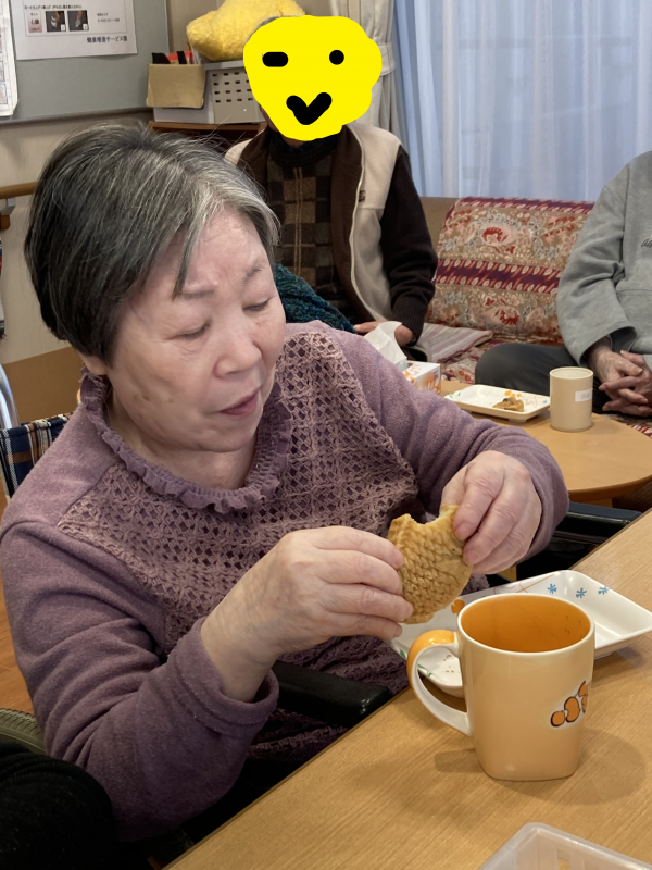 職員手作りの甘酒と、ひなあられと、たい焼きを、召し上がりました(^^♪