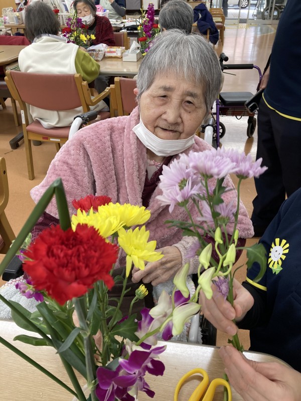 月に1回のデイサービス主催「フラワーアレンジメント教室」に参加しました!