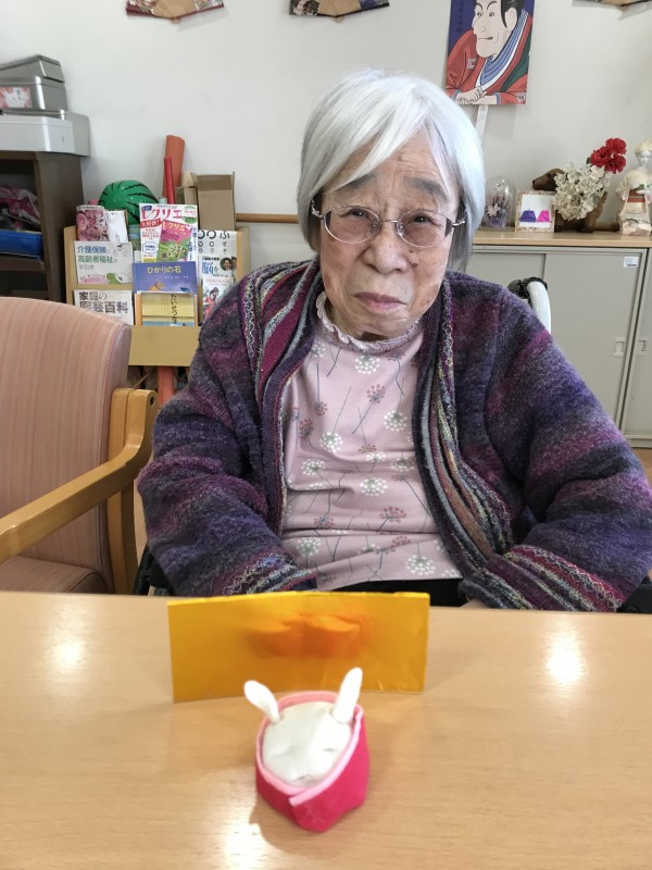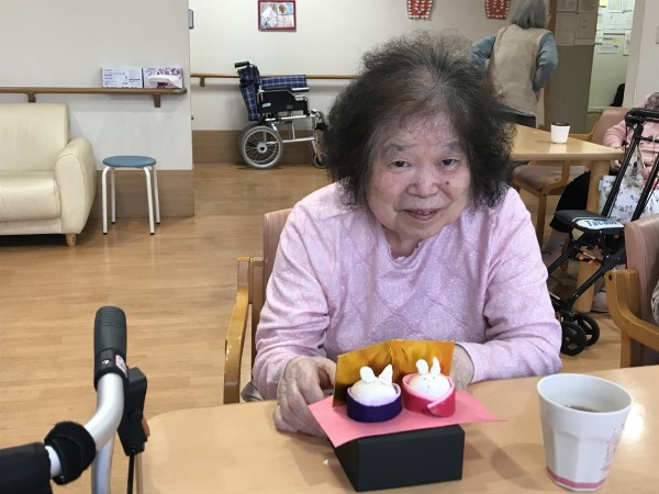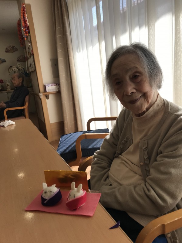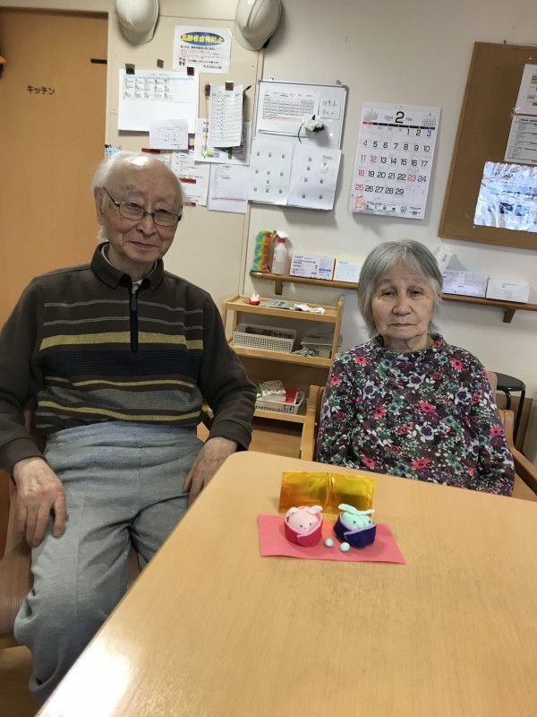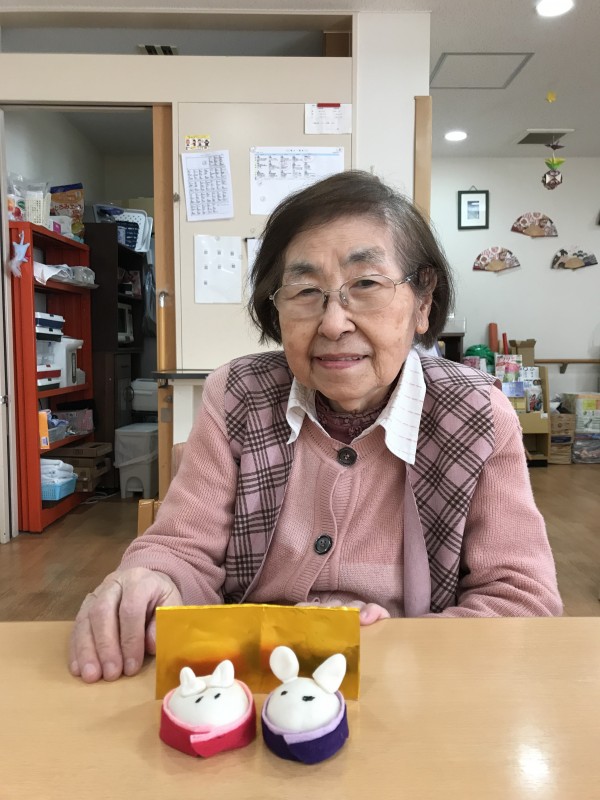 樹脂粘土をつかって、かわいい動物の人形を職員と一緒に手作りしました♪お雛様とお内裏様でしょうか?うさぎが雪うさぎのようでかわいいですね!