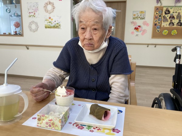 今月3日にはおやつにひなあられや桜餅(に見えるロールケーキ)をお出しいたしました(*'ω'*)