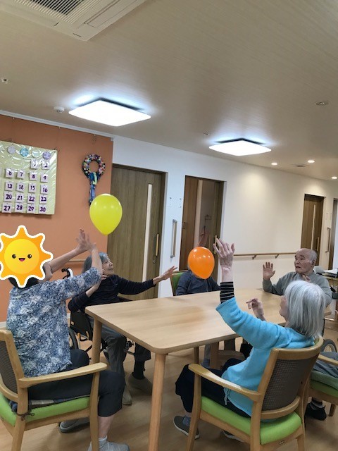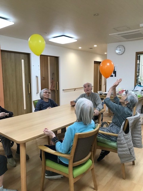 職員も調子に乗って風船2個にトライ。益々盛り上がりました。