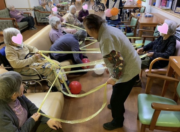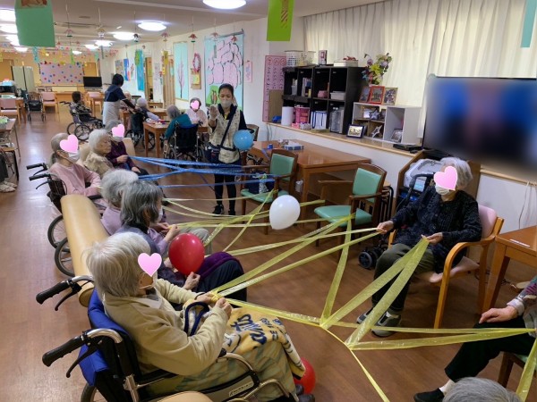 ご利用者様が持った紐の上で、風船をポンポンと出来るかな?