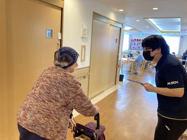 火事です点呼して避難です!でも訓練だから焦らないでね♪とお伝えするとわかってるよ大丈夫よと笑顔で返してくださいました✨