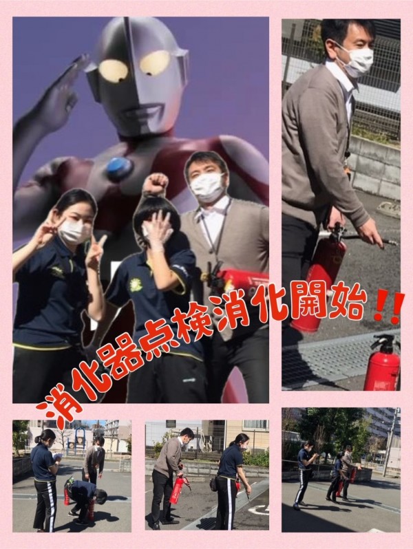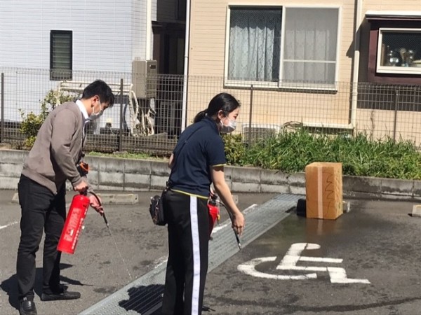 実際に消火器を使い消火活動・訓練を行いました。