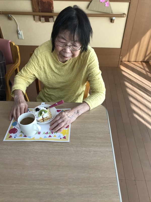 バースデーケーキは、恒例のスタッフの愛情いっぱい手作りケーキ !(^ ^)!