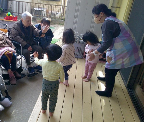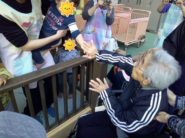 途中で交流のある保育園にあいさつに行くと、中でふれあう時間を つくっていただきました。