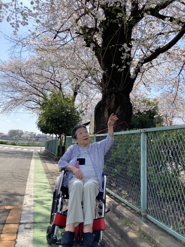 雨が降って桜が散ってしまう前に、入居者様達とお花見に行ってきました。
