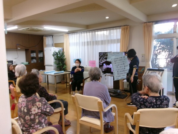 お次は、海外でも有名な曲「上を向いて歩こう」で、リズム体操です。