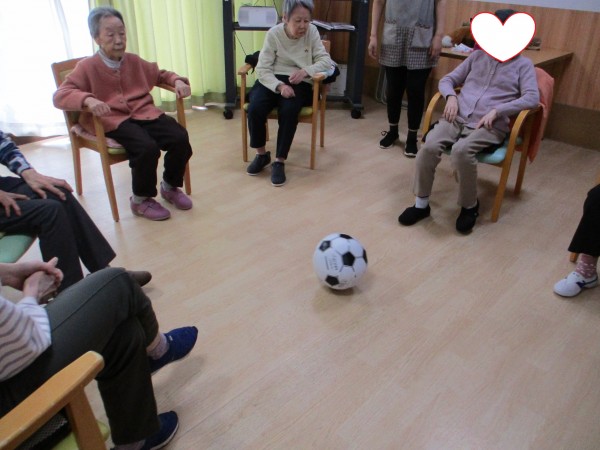 本日は、皆さんで体を動かそうと、手始めにボール蹴りをしました。