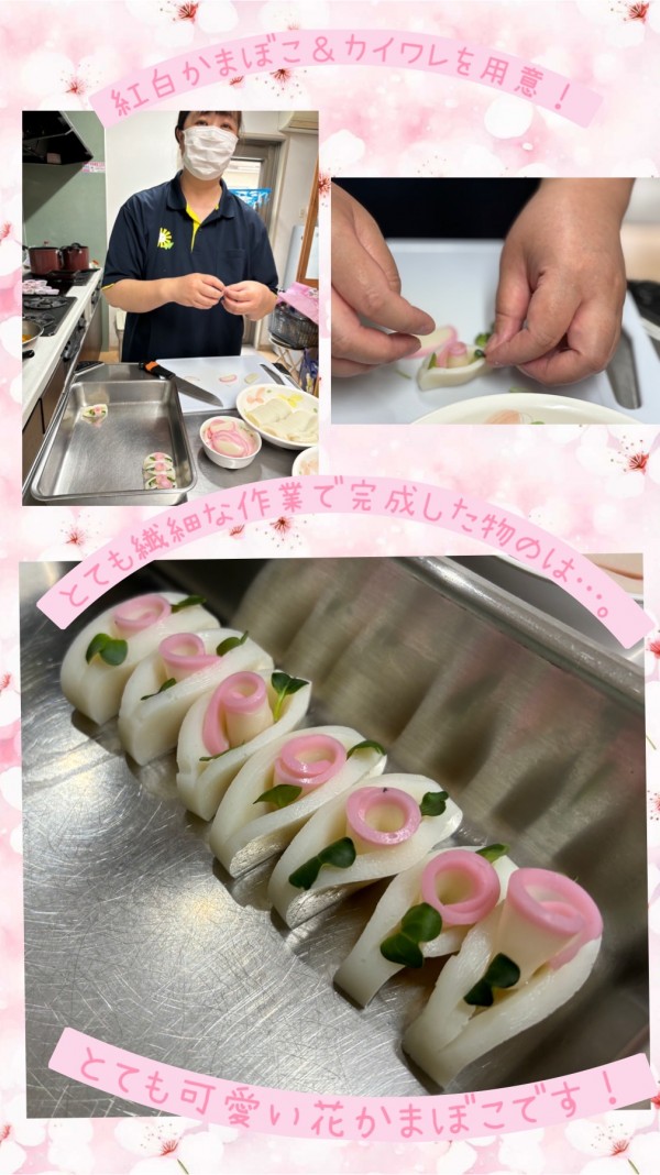 お弁当の中にとっても可愛い花かまぼこもあります!より華やかに目でも楽しめるお弁当となりました!(^_-)✿