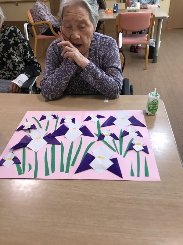 器用に「しょうぶ」を折り、用紙に張り付けます ( `ー´)ノ