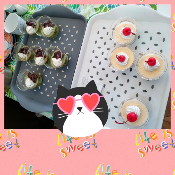 今回は手作りプリンが2種類。わ!!サクランボだぁ♥