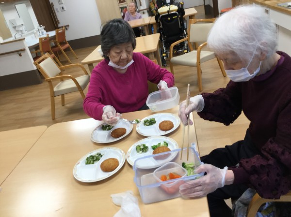 ホームでの生活にも少しずつ慣れて来られ、洗濯物畳みや料理の盛り付け・食器洗いなどお手伝い♬