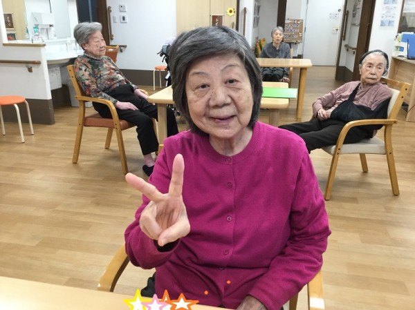 来られた初日、少し緊張されていましたが、ピースサインと良い笑顔が見れました。
