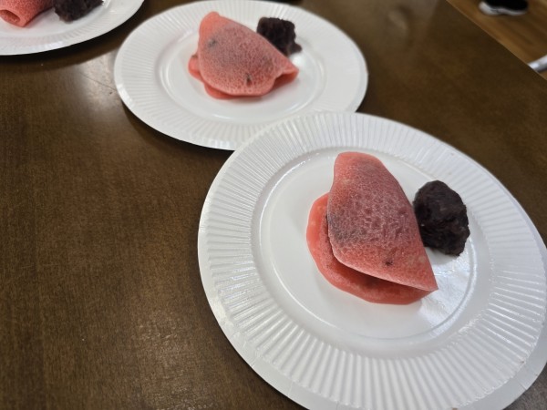 桜餅を、皆様とともに手作りして、食べました(^_-)-☆
