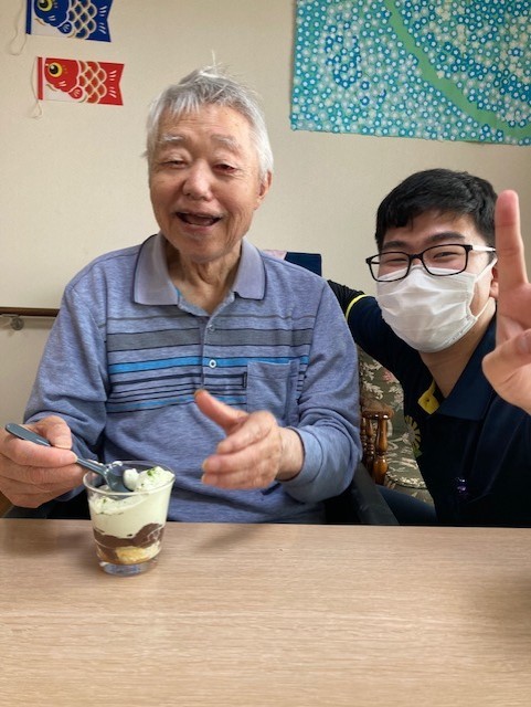 4月末から5月初めのお誕生日の方は3名いらっしゃいましたが、すべて1階の方たちでしたので、今回のブログは食べるところのみ!