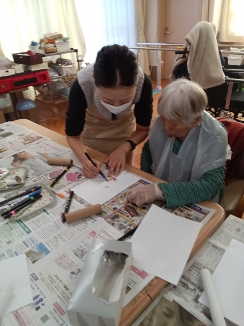 今日のレクは、お手玉投げです!