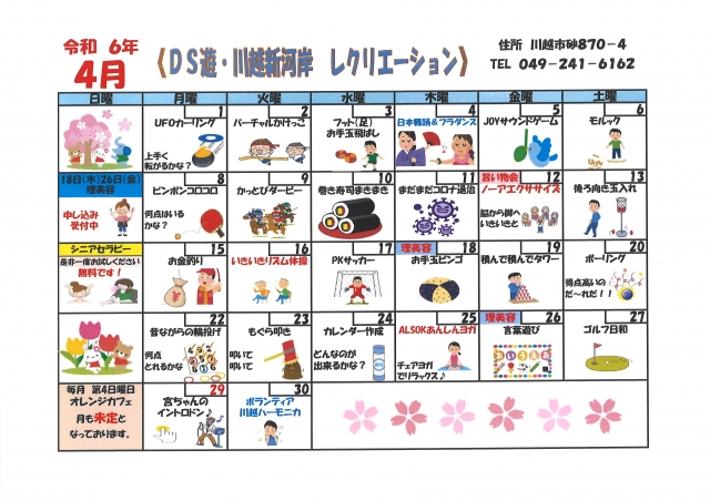 4月レクリエーションカレンダー♡