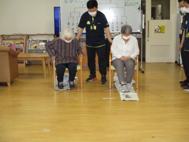 今日の運動レクは『新聞ダッシュ』です!