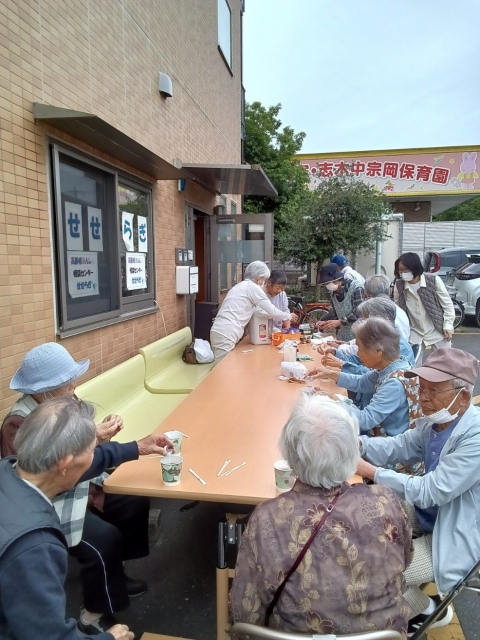せせらぎ地区3か所目~旗を立ててラジオ体操やってます~