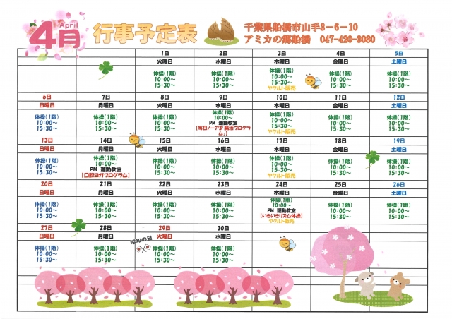 4月のイベントカレンダーとご当地メニュー(^-^)