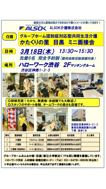 かたくりの里・目黒☆★☆ハローワーク渋谷にて面接会開催のお知らせ☆★☆