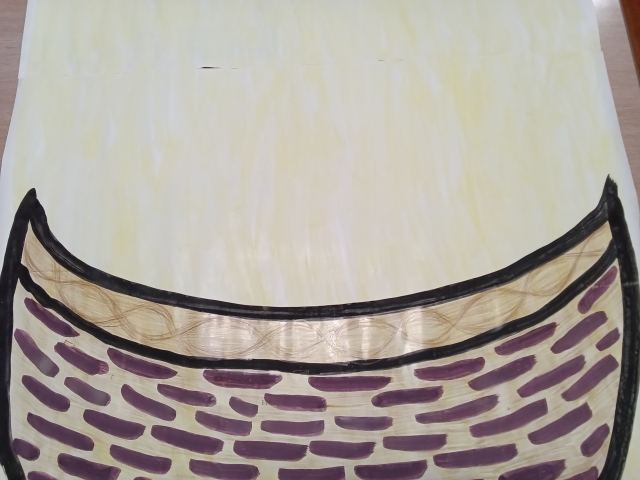 廊下に咲いた、涼やかな朝顔の壁画作り