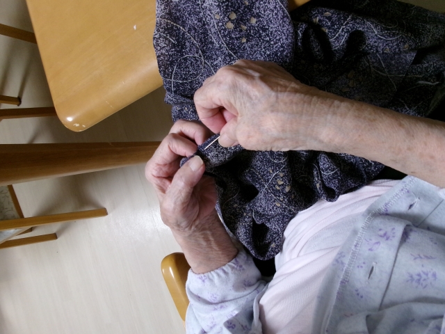 8/14 チクチク!お裁縫。見守りながらまだまだ現役!
