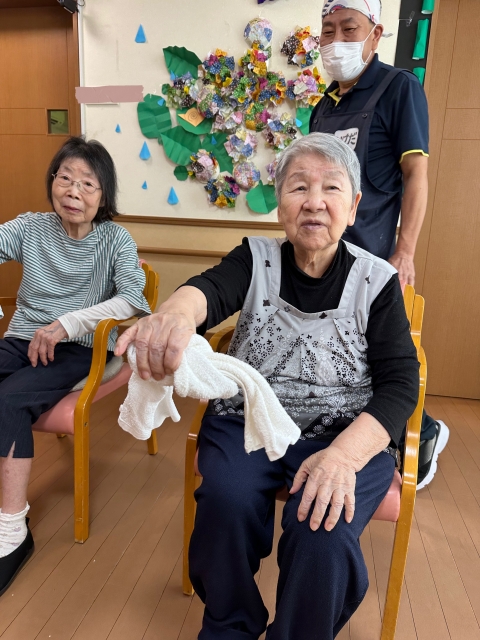 七夕の日、完成した飾り付けといっしょに(*^▽^*)
