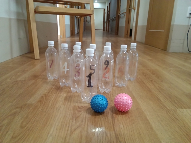 施設ではお馴染みペットボトルのボーリングレクリエーション