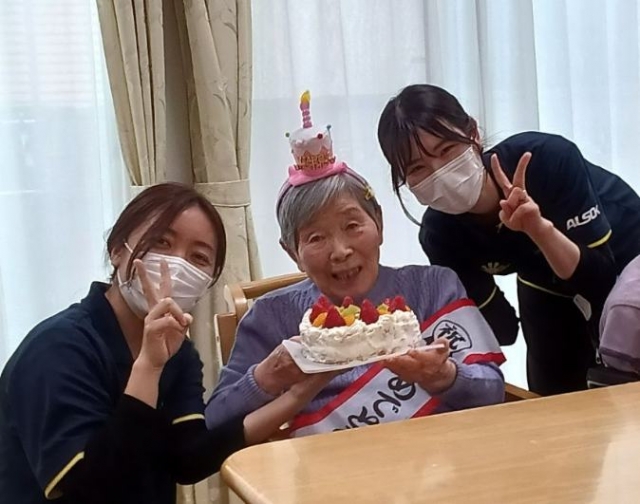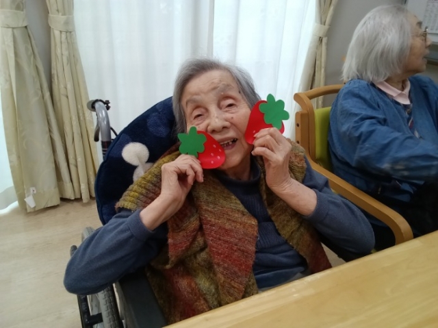 1階の皆様も春の壁画制作!いちごと一緒にかわいくパシャリ☆