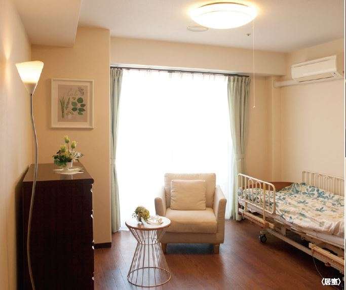 | 居室設備・サービス | 緊急通報装置, テレビ回線, エアコン, クローゼット, 防災設備, 空調換気設備, 照明器具, 電動介護ベッド, カーテン, 寝具, 車椅子対応トイレ(2居室共同設備), 車椅子対応洗面化粧台(2居室共同設備) |