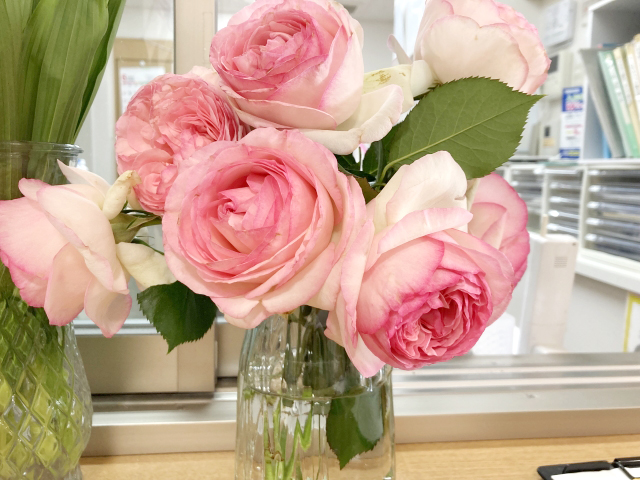みんなの家・南中丸では花好きの職員が多くいつも季節の花々が飾られており、お食事や休憩時などお花を楽しみながらお過ごしいただけます。