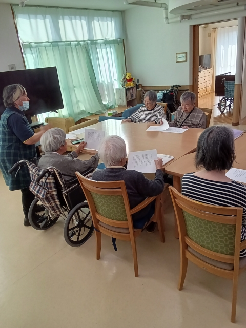 ホームでは季節に合わせて壁画制作を行い、共有フロアの壁面に飾り季節を感じながらお過ごしいただいています。