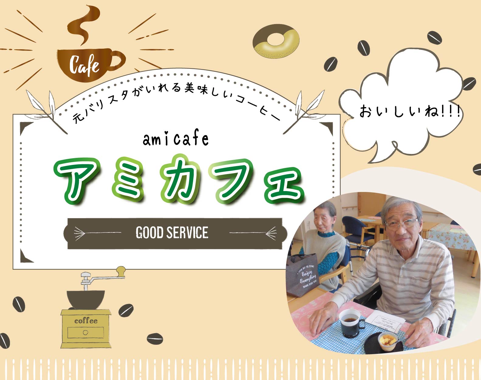 月に一度開催されるアミカフェは入居者様にも大人気!!おやつを食べながら美味しいコーヒーを。一息つく時間を大事に 皆様に喜んでいただけるレクレーションをご提供させていただきます。