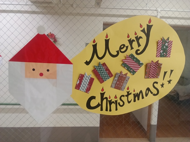 春のお花見会では職員のギター演奏で合唱など楽しみました。壁面も満開の桜で飾りつけました。