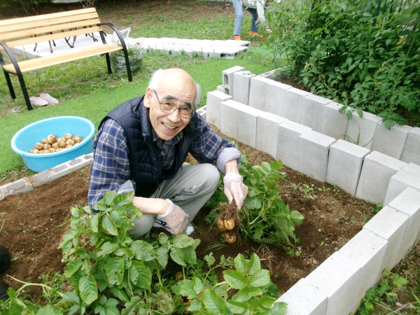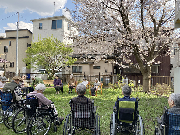すこや家・大宮日進には広い中庭があり、季節の野菜や花を植えています。入居者様も一緒に楽しみながら園芸に参加いただき、収穫した野菜やスイカなどはお食事にてご提供しております。
